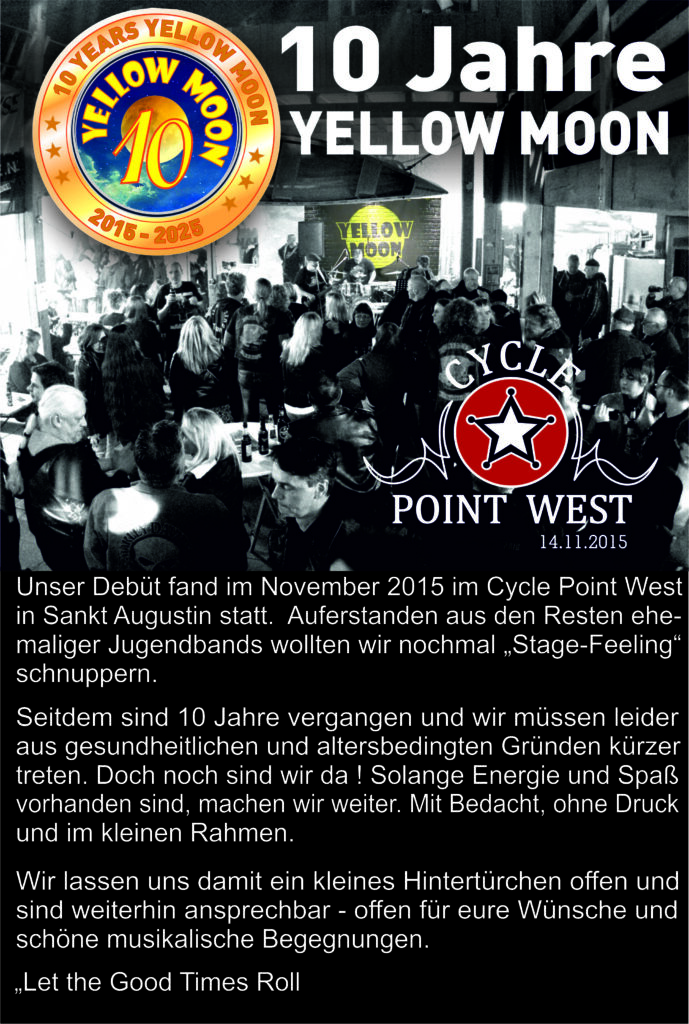 Vor langer, langer Zeit, als Rockmusik nur was für rebellische Jugendliche war, als übersteuerte Gitarren Eltern aufschreckten, als lange Haare und kurze Röcke noch für Stirnrunzeln sorgten, da wurde der Grundstein für die Musik von Yellow Moon gelegt. In dieser von Rebellion und Umbruch geprägter Zeit entstand ein wahrer Schatz an unvergessener Musik, die ihre Faszination bis heute nicht verloren hat.